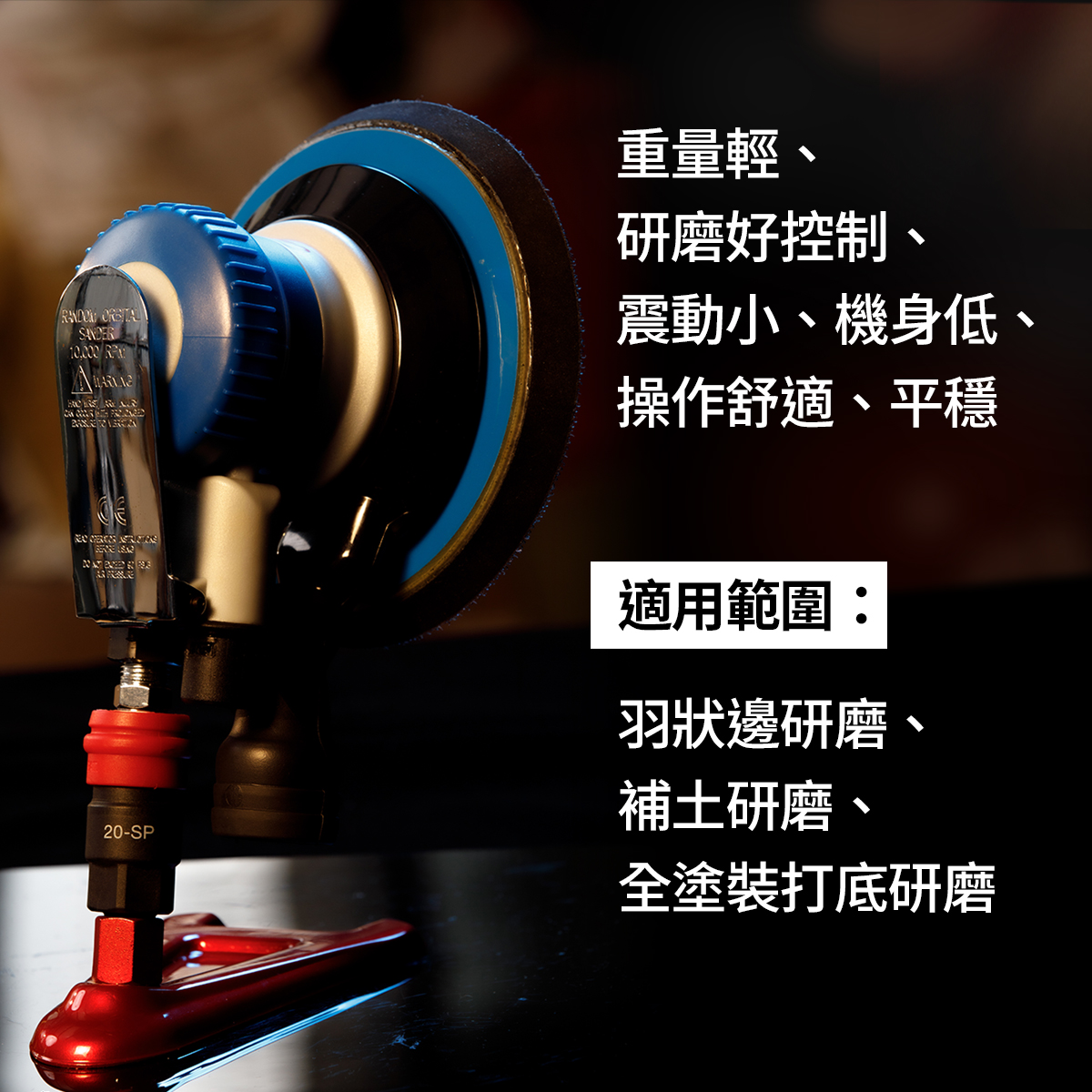 適用範圍:羽狀邊研磨、補土研磨、全塗裝打底研磨