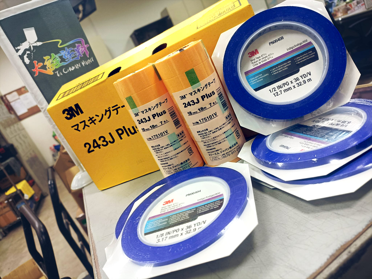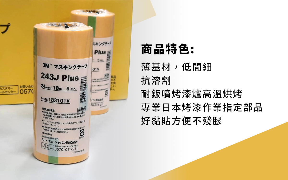 商品特色: 薄基材,低間細 抗溶劑 耐鈑噴烤漆爐高溫烘烤 專業日本烤漆作業指定部品 好黏貼方便不殘膠